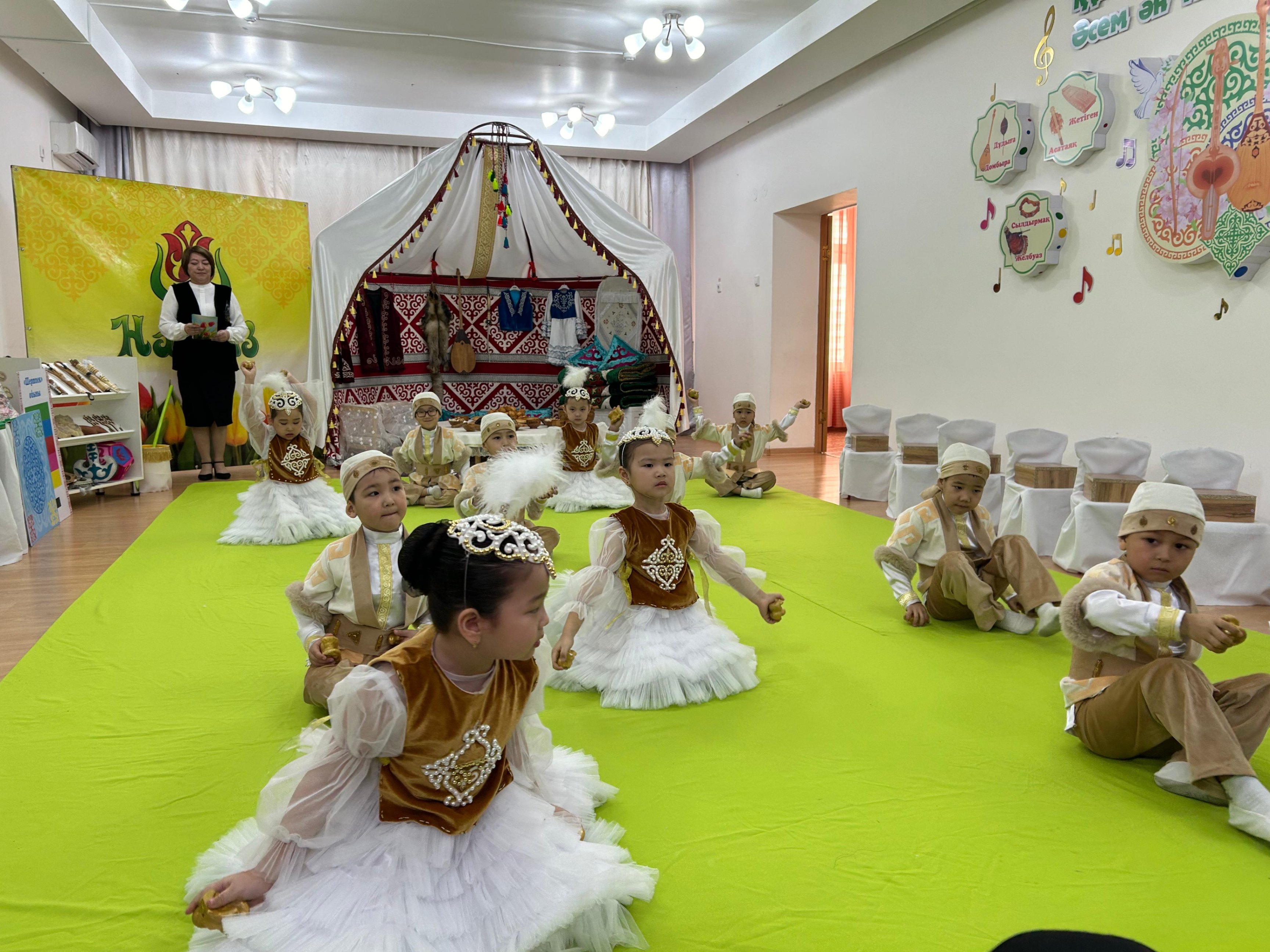 Күннің жаңаруы мен берекенің символы болған мейрам бүлдіршіндерге қуаныш сыйлап, ұлттық құндылықты ұлықтауға бағытталды. Мың бұралып билеп, көктем мезгілінің құрметіне өлең оқыған балақайлар мерекенің сәнін кіргізді. Әр түрлі аспаптармен сабақ өткізетін музыка пәнінің жетекшісі Тамара Махан балабақшада 3 жылдан бері қызмет етеді. Есту және көру қабілеті нашар балаларға арнайы аспаптармен сабақ өткізу әдісі олардың тез дамуы мен жақсы қабылдауына ерекше көмектесетінін айтады.