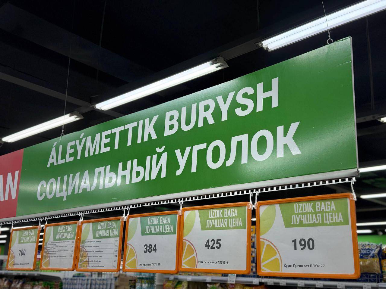 Аталған бұрыштарда тұрғындардың күнделікті тұтынуына қажетті негізгі азық-түлік өнімдері төмендетілген бағамен сатылады. «Әлеуметтік бұрыштар» қаладағы ірі сауда нүктесінде — Дина, Altyn Food, Анвар, сондай-ақ Дана супермаркеттерінде орнатылды.