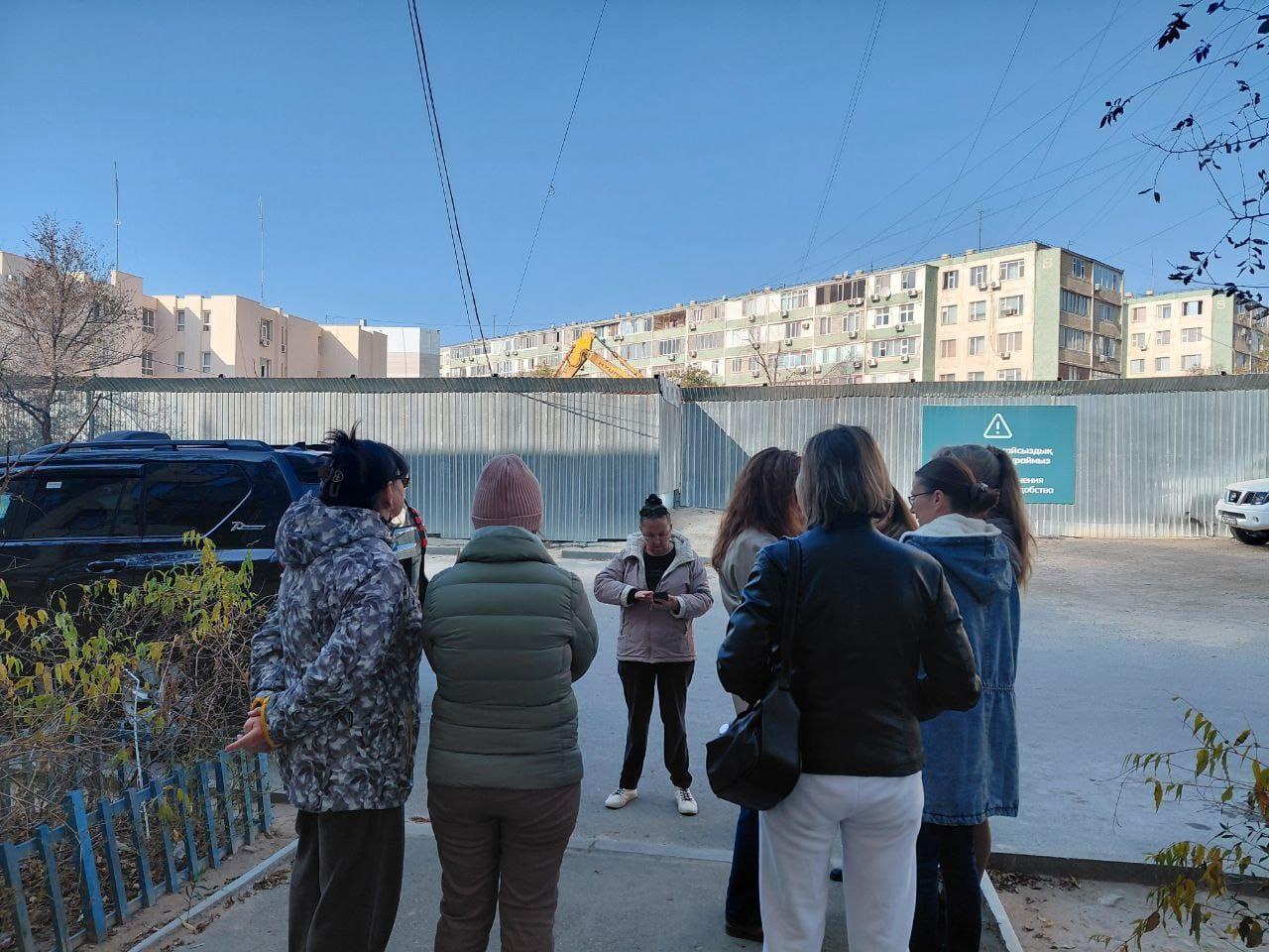 Құрылысшының өкілімен екінші кездесуіміз 8 қарашада өтті. Бізге құрылыс бастау үшін тағы бір құжат қажет екенін айтты, бірақ оны олар тек үш аптадан кейін ғана алады. Демек, құжат алынғанға дейін құрылыс бастауға құқығы жоқ. Алайда олар жерді қоршап, техника әкеліп, шұңқыр қазып, 8-үйге жақын жолдың бір бөлігін жауып қойды. Егер 8-үйде өрт болса, өрт сөндіру көліктері балкон жақтан өте алмайды. Ал құрылысшыны бұл мүлде қызықтырмай отыр, – дейді тұрғындар.