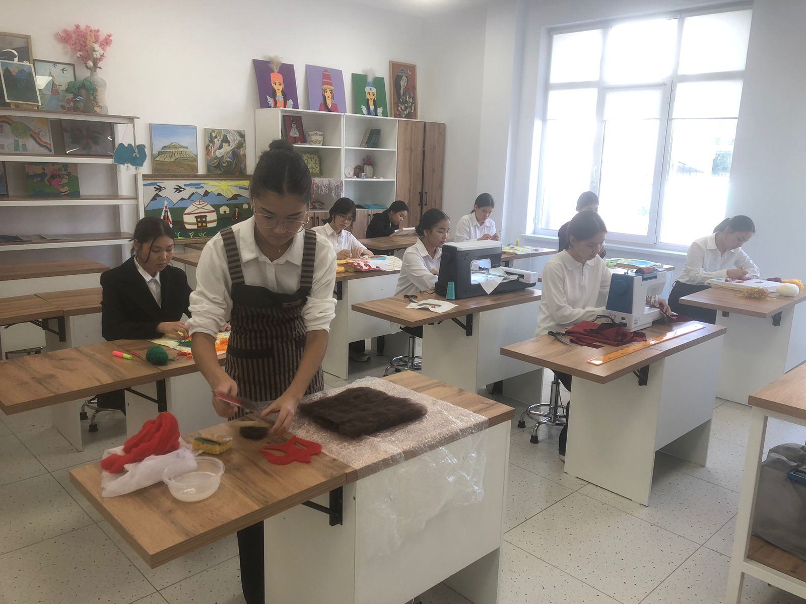 Еңбек сабақтарында қыз балалар аспаздық өнердің қыр-сырын меңгеріп, ұлттық тағамдарды әзірлеуді үйренсе, ер балалар ағаш жону, металл өңдеу, зергерлік бұйым жасау және тақтай бетіне ою-өрнек түсіру сынды қолөнер түрлерін игереді. Сонымен қатар, ұлттық қолөнер дәстүрлері мен тұрмыстық шеберлікке де ерекше мән беріледі.