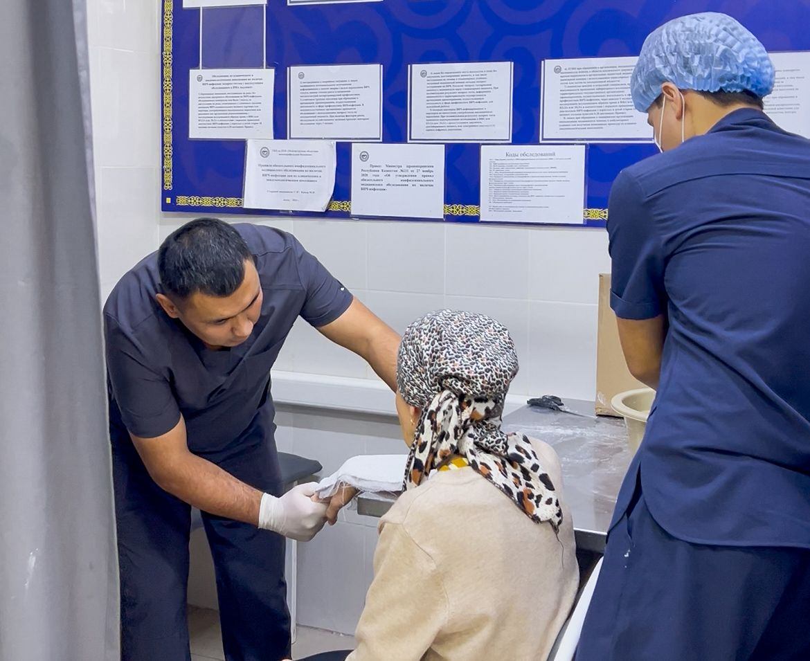 Қабылдау бөлімі күшейтілген режимде жұмыс істеп жатыр. Шұғыл жағдайға байланысты күндізгі бригадаға қосымша ретінде үйден 2–3 дәрігер шақырылды. Қазіргі таңда екі рентген кабинеті үздіксіз қызмет көрсетуде, барлық науқасқа кезек тәртібімен медициналық көмек көрсетілуде.