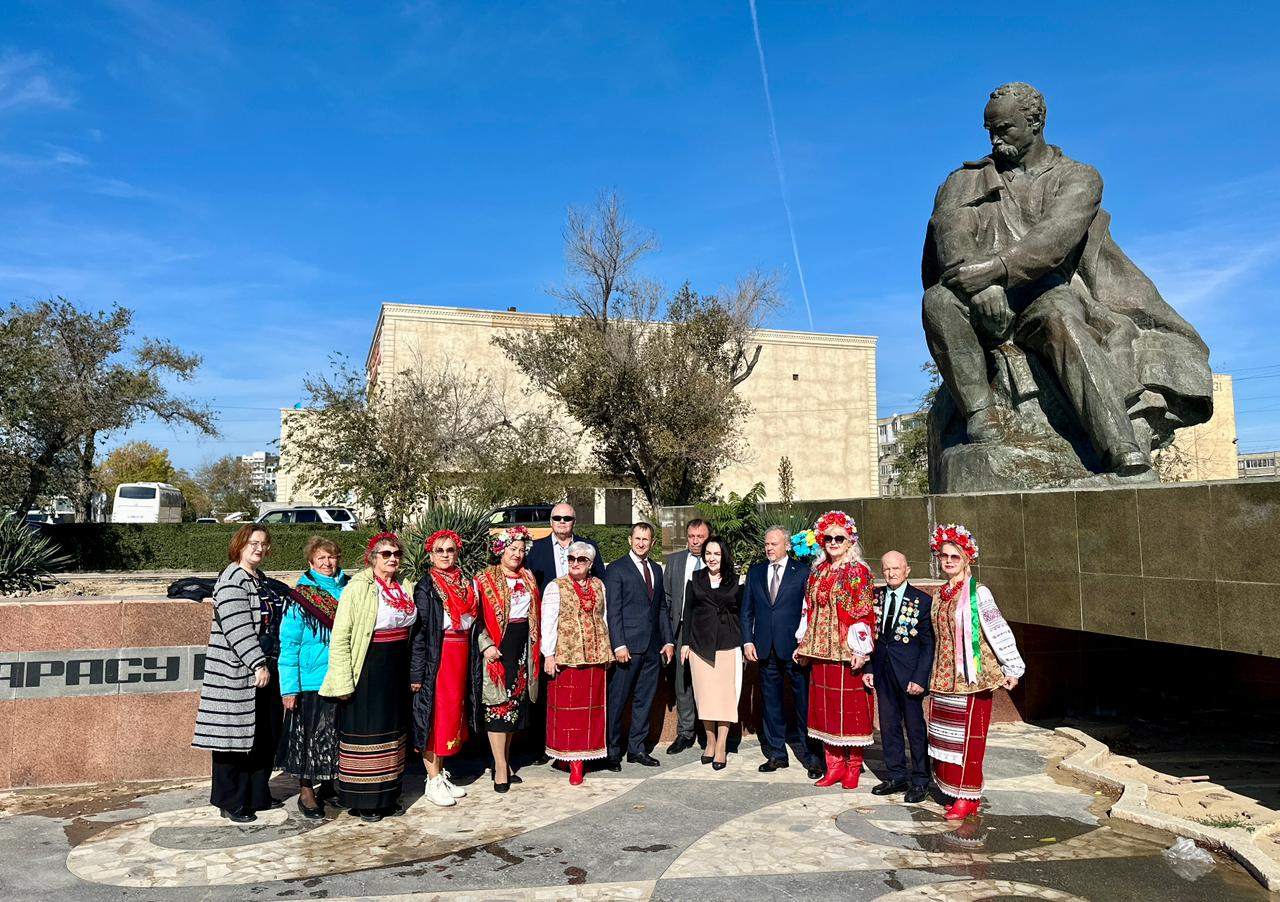 Украин делегациясы Ақтаудағы Тарас Шевченко ескерткішіне гүл шоқтарын қойып, бірнеше халық әнін орындады.