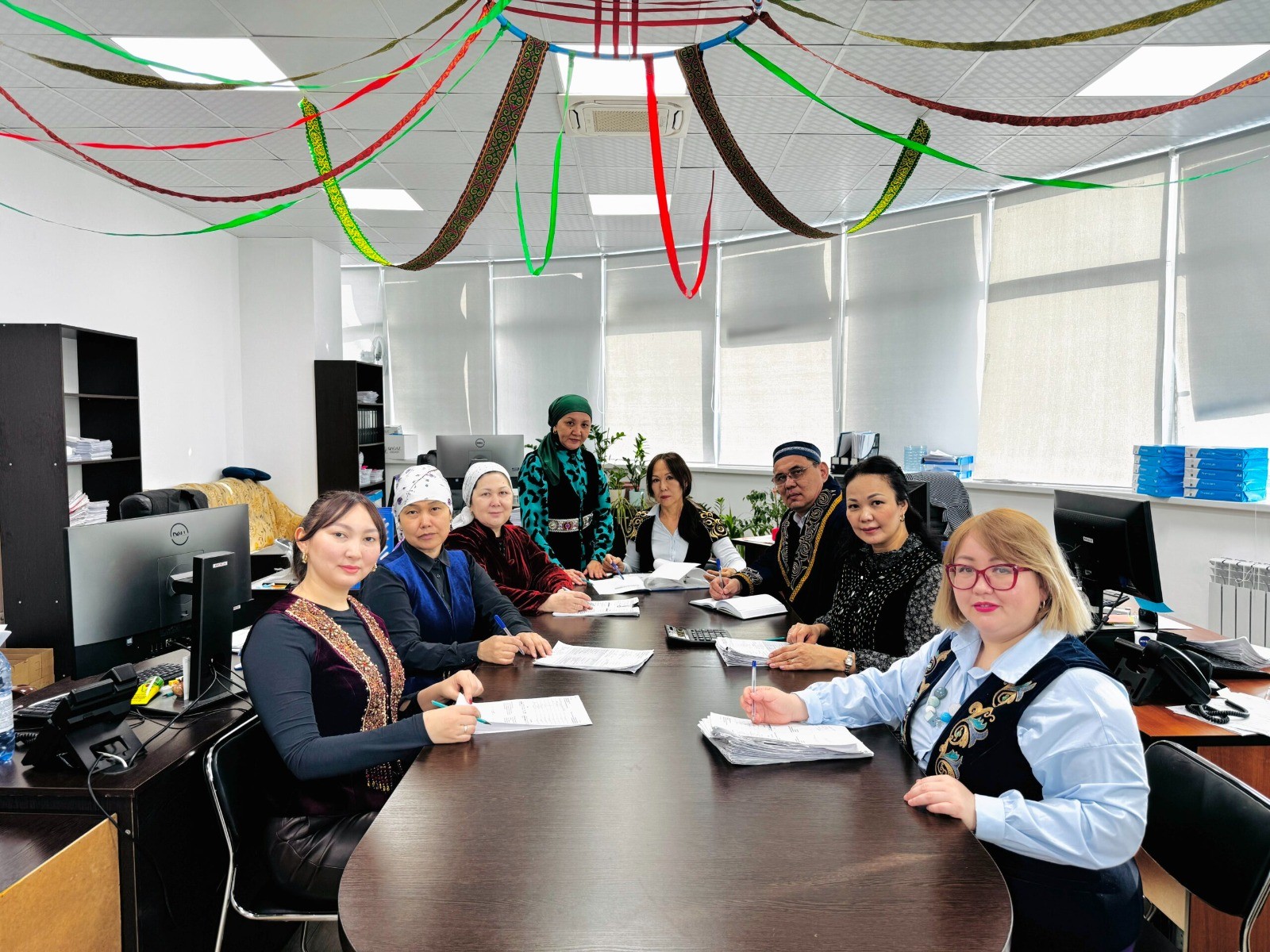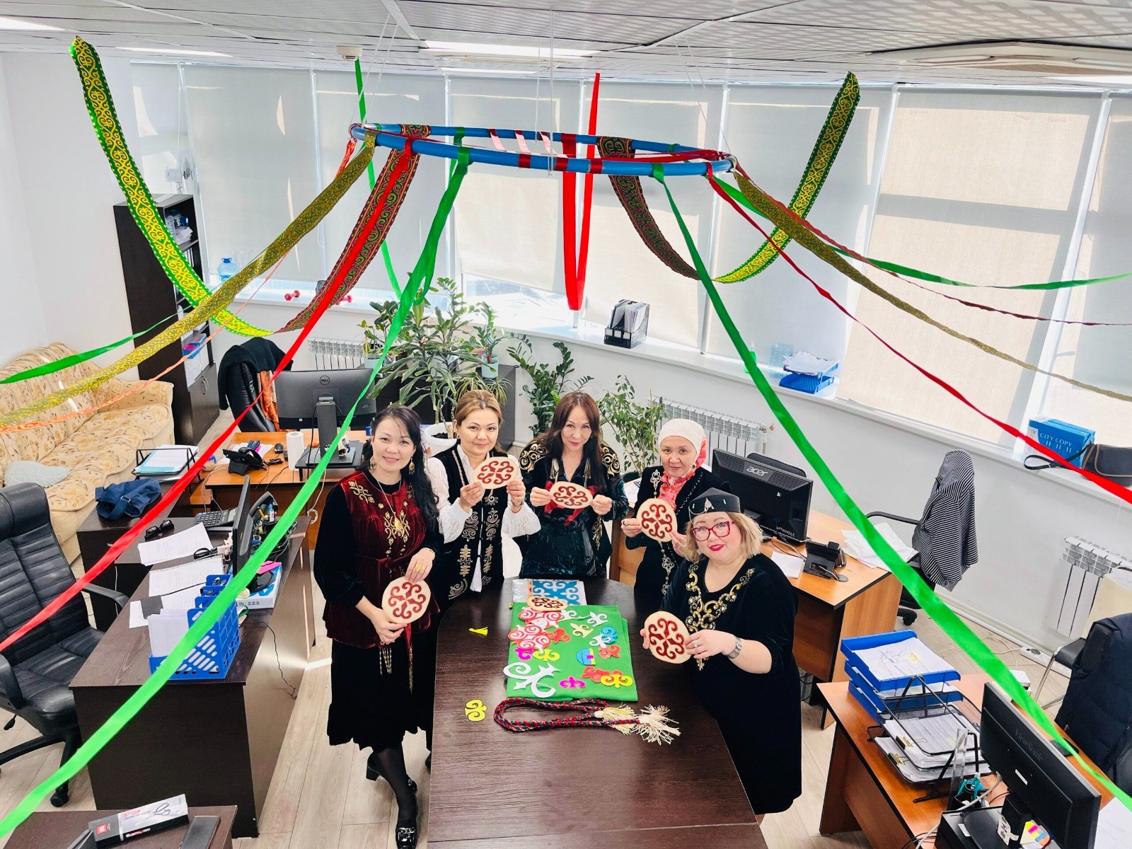 Бұл идея екі жыл бұрын ойымызға келді. Содан бері әр бейсенбі күні жұмысқа ұлттық киіммен келеміз. Әр қызметкер өз киімінің тарихын айтып береді. Сонымен қатар, ұлттық тағамдар да алып келеміз. Бұл – жастарға үлкен тәрбие деп ойлаймын. Осы ісімізбен сыртқы келбетке мән беріп қана қоймай, ұлттық мәдениетке деген құрметімізді көрсеткіміз келеді. Біздің бастамамыз басқа бөлімдерге де үлгі болып, олар да қазақы киіммен келе бастады. Тағы бір ерекшелігі – бұл күні тек қазақ тілінде сөйлесеміз. Егер біреу басқа тілдегі сөз қолданса, айыппұл төлейді. Жиналған қаржыға бөлімге қажетті заттар сатып аламыз, - дейді әлеуметтік жұмыс бөлімінің басшысы Анар Махамбетова.