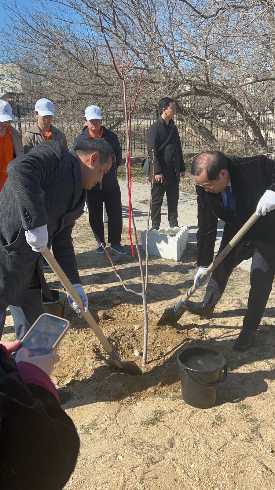 Семинар тек талқылаумен шектелмей, практикалық іс-шараға ұласты. Облыс әкімінің орынбасары Аббат Өрісбаев экологиялық мәдениеттің үлгісін көрсетіп, білім ордасының аумағына көшет отырғызды.