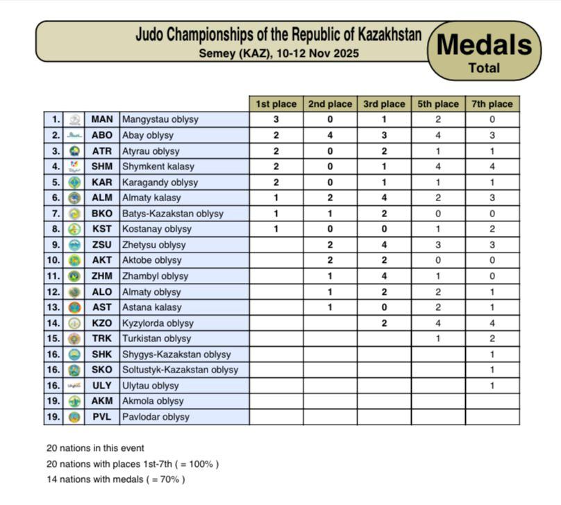 Тарихи жетістік: Маңғыстау облысының дзюдошылары медаль саны бойынша ел чемпионы атанды