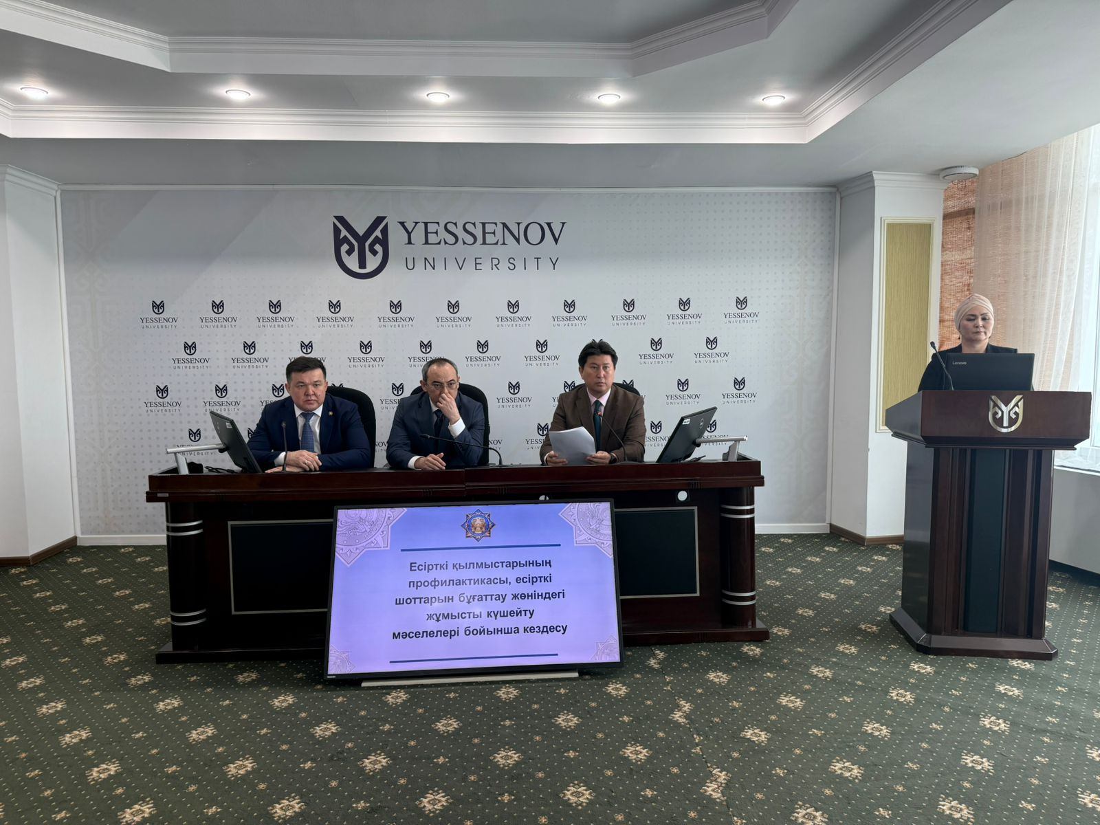 «Бүгін студенттермен арнайы кездесу өткізіліп жатыр. “Заң және тәртіп” қағидаты аясында жастарға есірткі сатуға бағытталған сайттар туралы түсіндіру, оларды анықтау және бұғаттау бойынша ағарту жұмыстары жүргізілуде. Сонымен қатар, осы бағытқа қызығушылық танытқан студенттерді іріктеп, оларды ІІМ мен прокуратура саласына бейімдеу, кәсіби тұрғыда шыңдалуына мүмкіндік беру көзделген», – деді ол.