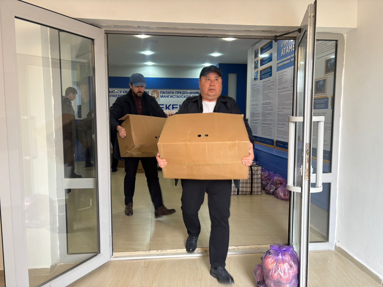 «100 добрых дел»: в Мангистау 100 семьям передали продукты питания