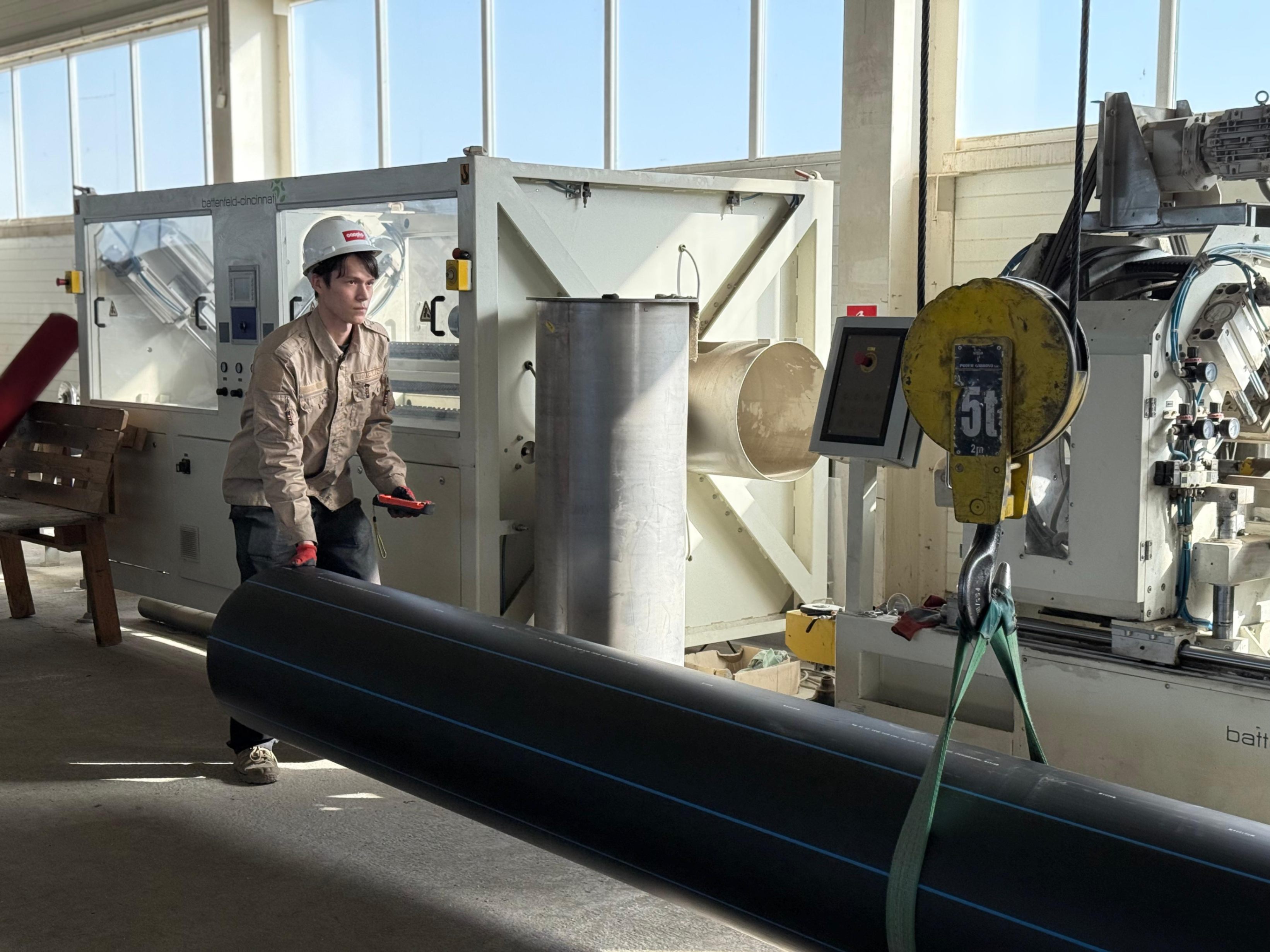 На предприятии выпускаются трубы диаметром от 110 до 710 миллиметров — для канализационных систем, водо- и газопроводов. Производственный процесс полностью компьютеризирован, что исключает ошибки и повышает точность.