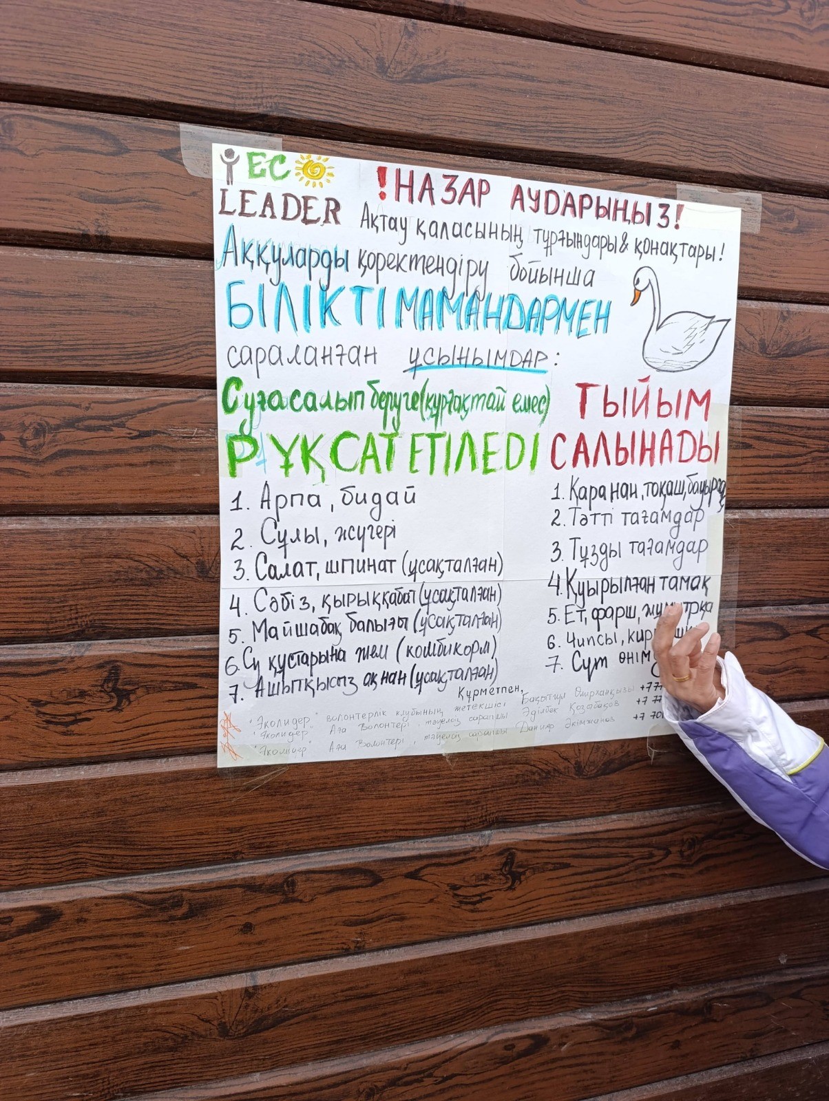 Кроме того, волонтеры установили на побережье информационные таблички о том, чем нельзя кормить лебедей, а также провели разъяснительную работу с жителями. Птицам был выдан специальный корм, а участники акции продвигали культуру бережного отношения к природе.