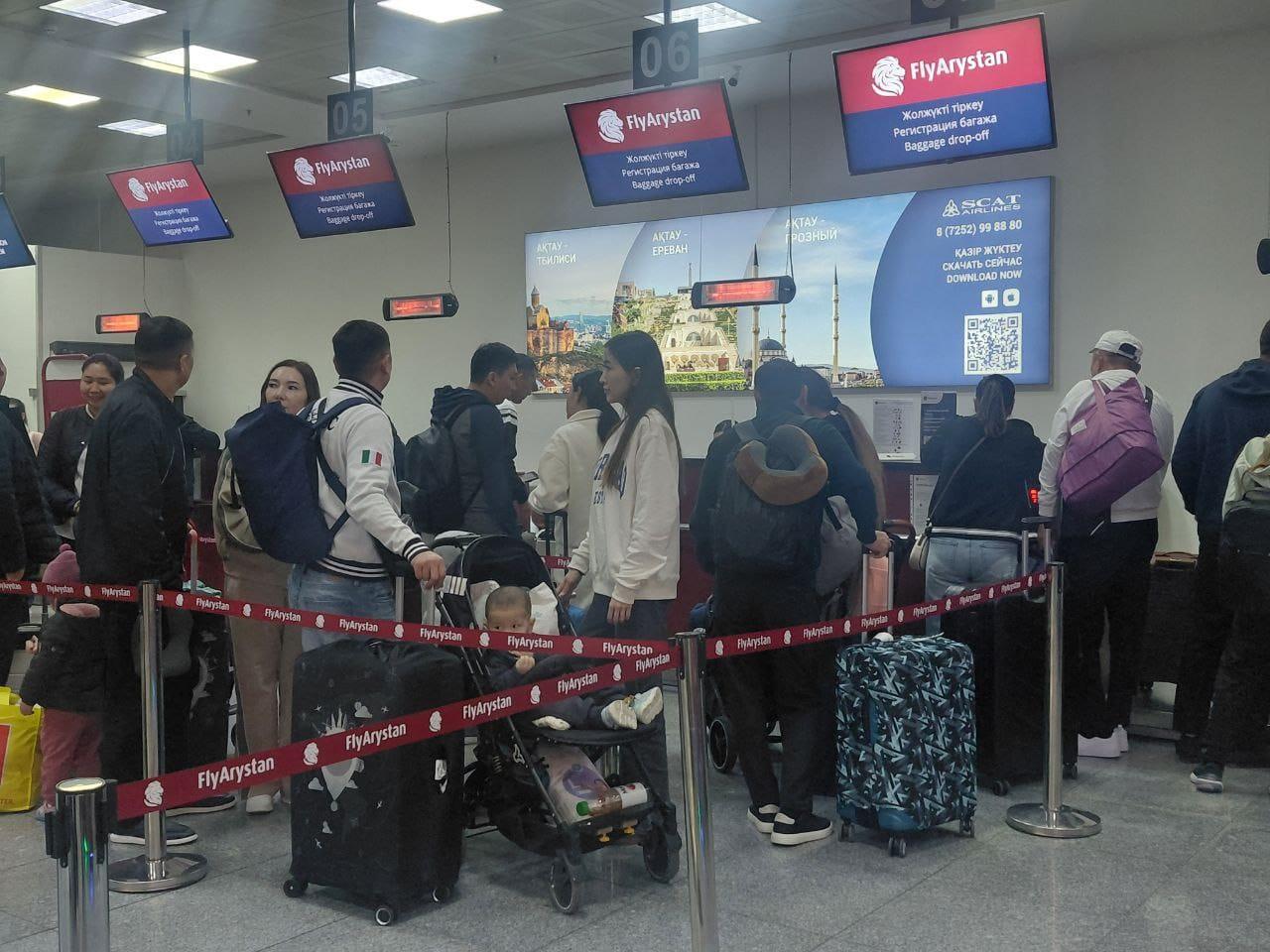 Среди первых пассажиров – семья Дуйсалиевых из Атырау. В Актау они прилетели накануне вечером и одними из первых прошли регистрацию на рейс в Дубай с утра.