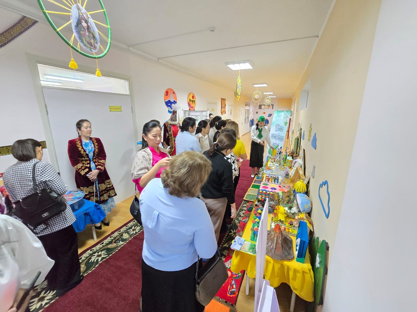 Также с участием педагогов, родителей и детей были организованы выставки на темы «Казахская драгоценность - наследие для будущих поколений!» и «Защищая природу -сохраняем будущее!».