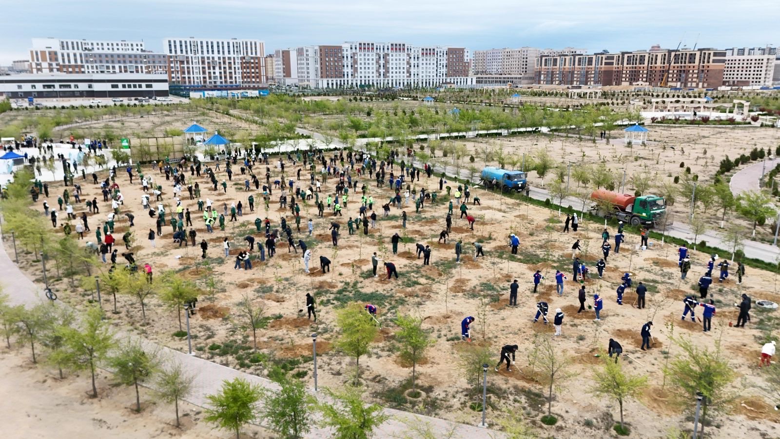 Важной частью события стало установление прямой телемост-связи с Президентом Республики Казахстан. В мероприятии принял участие аким области Нурдаулет Килыбай, который также посадил дерево.