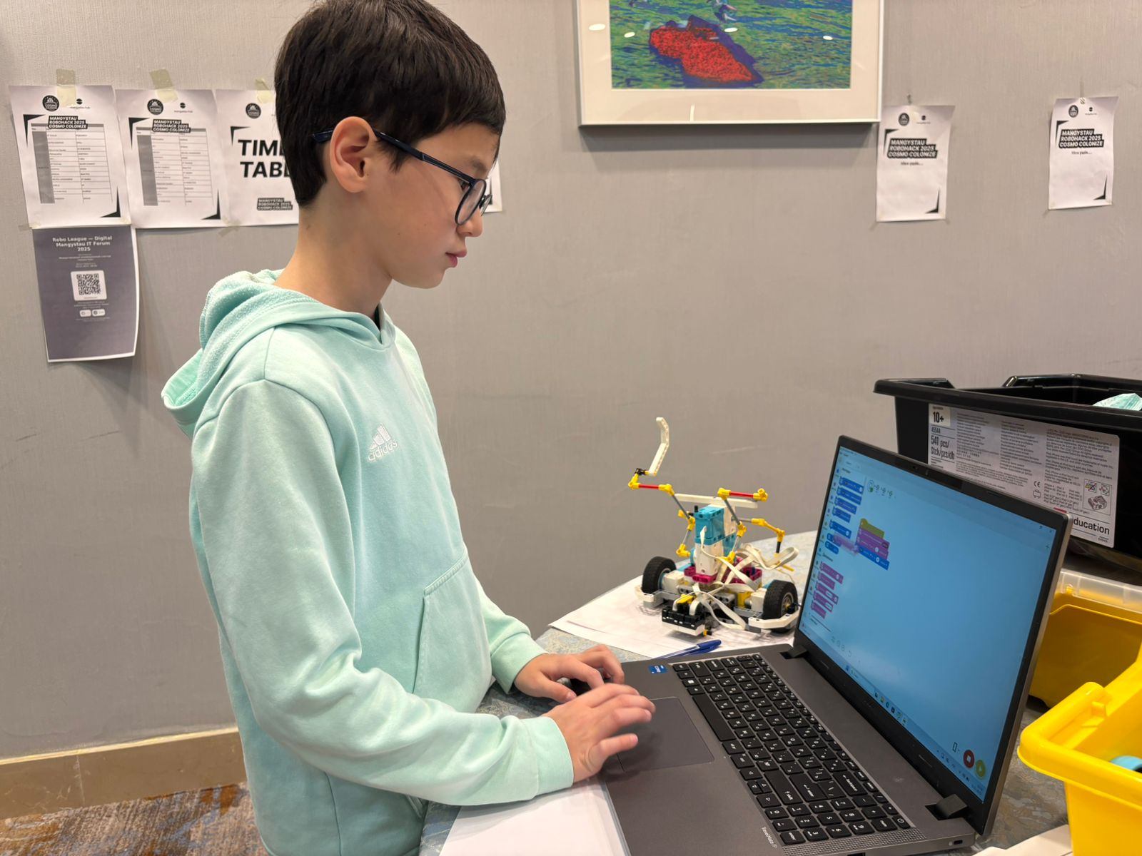 - Я капитан команды S7-RobOrda. Сегодня на соревнованиях мы будем собирать робота. По заданию необходимо написать код и показать высокий результат. Мы уже участвовали в нескольких конкурсах, но пока не становились призерами. Тем не менее, поскольку мы сравнительно недавно пришли в эту сферу, на каждом соревновании анализируем свои ошибки и обмениваемся опытом с другими командами, - рассказал 13-летний Санжар Амирхан.