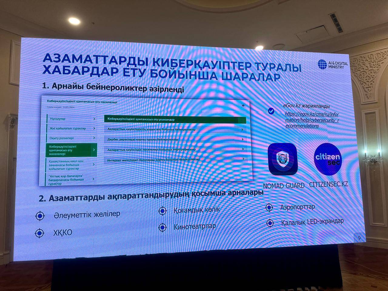 На встрече также был затронут вопрос информационной безопасности. По словам вице-министра, для защиты данных и обеспечения безопасности реализованы следующие меры: